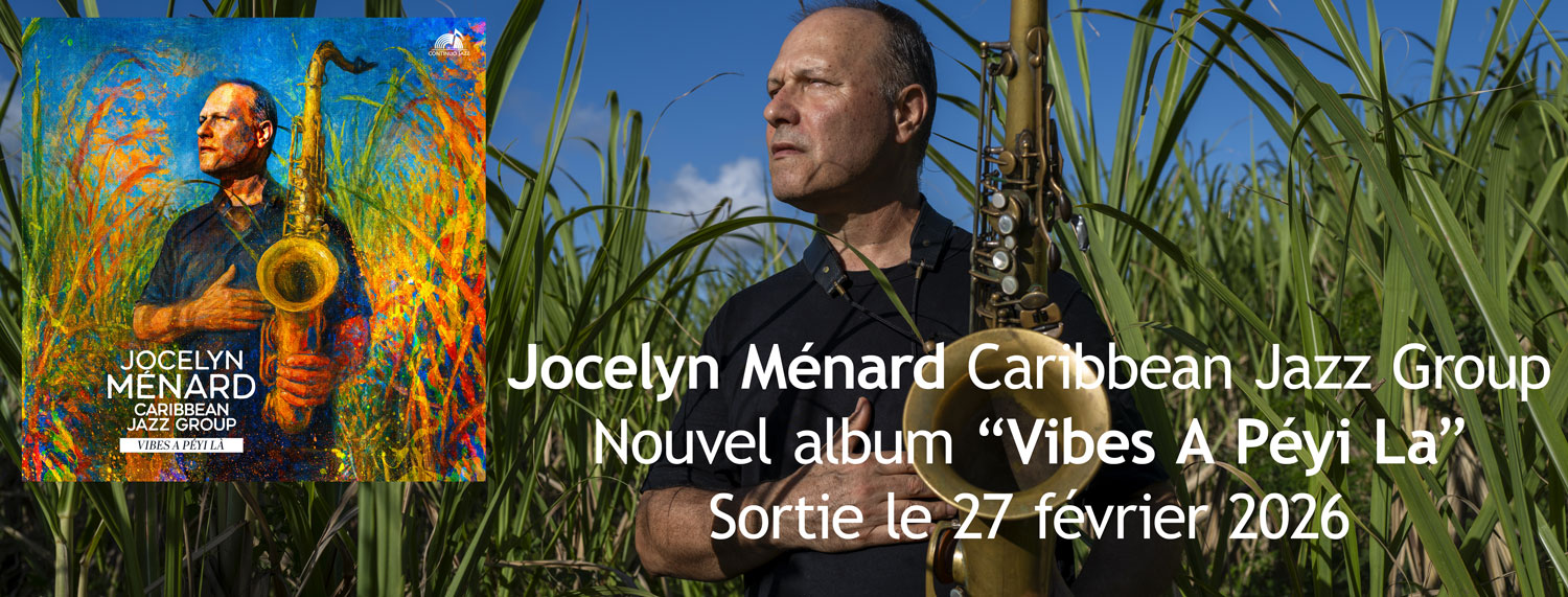 À la croisée des chemins entre la Guadeloupe et l’Amérique du Nord, Jocelyn Ménard est un saxophoniste au son chaleureux. Formé à Montréal puis à New York et à Paris, il s’installe en Guadeloupe à la fin des années 80 pour y enseigner. Il s’intègre rapidement à la communauté musicale de l’île, avec laquelle il joue et monte de nombreux projets. Après un premier album en 2001, il ouvre sa propre école, et développe son projet Gwanada qui mêle les rythmes de la Caraïbe aux influences de son Canada natal. En 2012, il fait paraître Terre Mère qui développe les compositions créées avec Gwanada. Jocelyn partage sa musique entre les Antilles et le Canada où il se produit très régulièrement. On le retrouve ainsi aussi bien sur la scène du New ‘Ti Paris, du Creole Beach ou du Diamant en Guadeloupe, qu’au Bar Saint-Angèle ou bien au Dièse Onze à Montréal. Jocelyn fait actuellement tourner la nouvelle formule de son Caribbean Jazz Group sur ces différentes scènes.